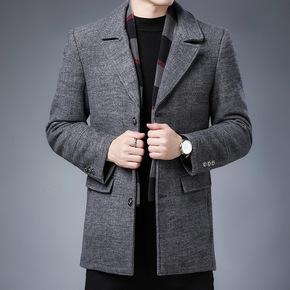冬季毛呢大衣男 休闲款羊毛呢中青年加棉加厚妮外套 ...