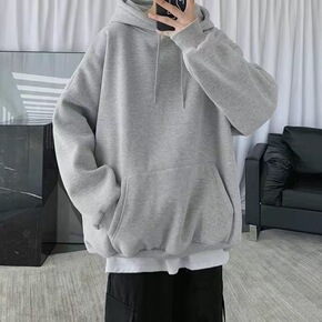 黑色卫衣秋冬季港风男连帽潮流学生宽松百搭简约色薄款...