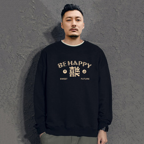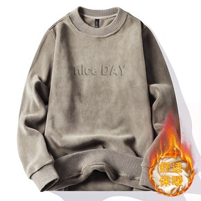 加绒加厚男装秋冬国潮卫衣男无帽上衣圆领长袖男士情侣...