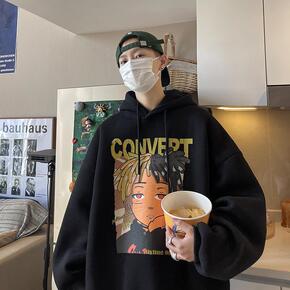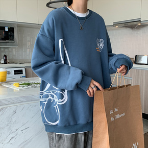 圆领卫衣男冬季新款港风潮流ins个性动漫印花上衣服...