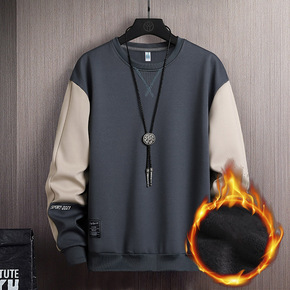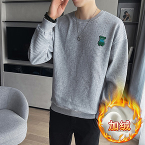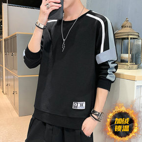 保暖打底衫男款春秋季套头卫衣男潮加绒宽松圆领色百搭...
