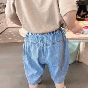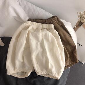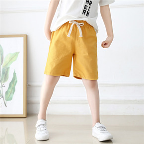 韩版童裤森系~很好搭配的棉麻五分裤色亚麻中裤宝宝灯...