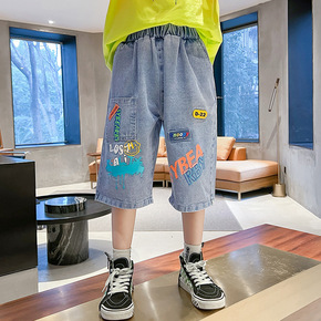 男童牛仔短裤2022夏装新款中大童宽松帅气七分裤儿...