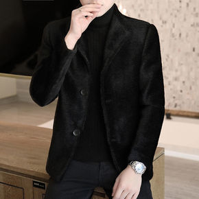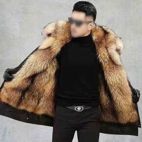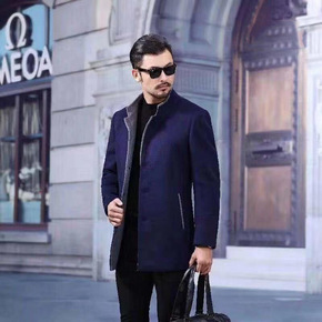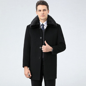 汇努特男冬装中长羊毛呢大衣外套水貂领保暖拆卸白鸭绒...