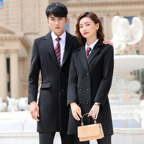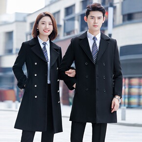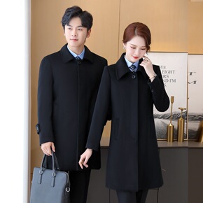 银行冬季工装呢子大衣男女藏青黑色中长商务职业工作服...