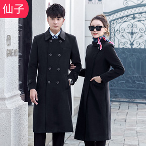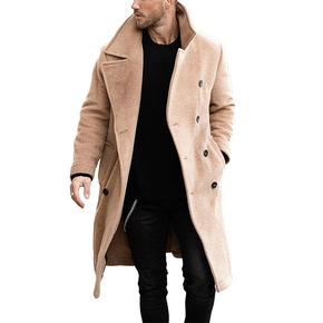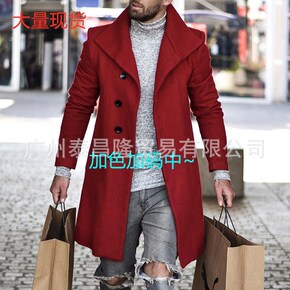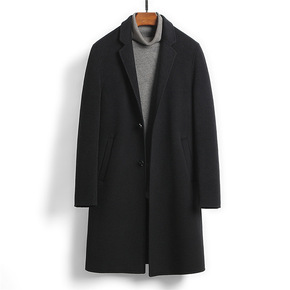 2021年冬装新款男士中长过膝毛呢大衣男纯色风衣外...