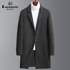 春秋新款中长格子羊毛双面呢大衣男士休闲双面呢羊毛大...