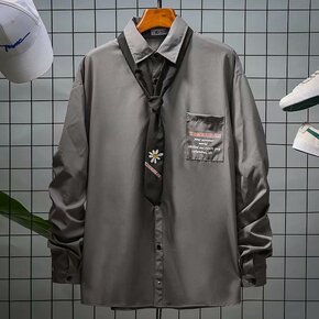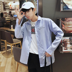 秋季新款衬衫男学生长袖韩版潮流外穿衬衣男士休闲外套...