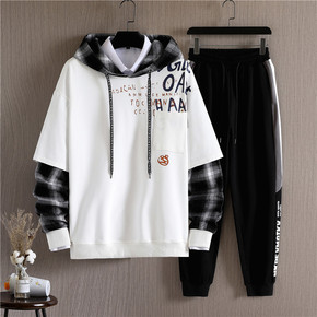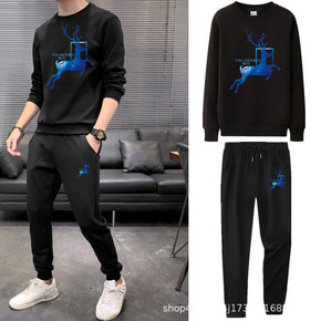 卫衣男士冬季2019新款韩版潮流加绒加厚运动套装男...