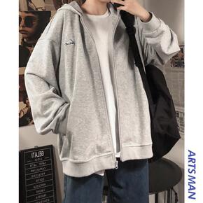 秋季韩版百搭纯色绣花运动开衫卫衣男学生潮流连帽宽松...