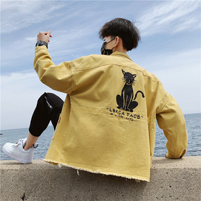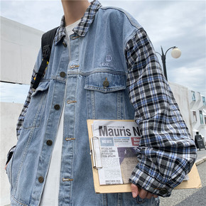 秋季外套男学生百搭ins韩版宽松牛仔夹克拼接男士大...
