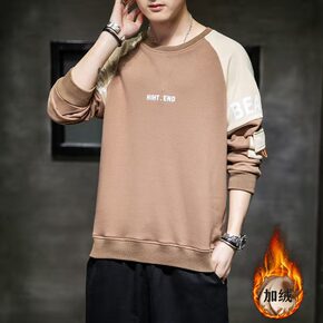 港风大码加绒圆领卫衣男韩版印花套头卫衣男学生潮流宽...