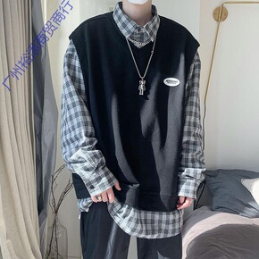 假两件卫衣男学生宽松港风潮流连帽衫情侣秋季潮牌上衣...