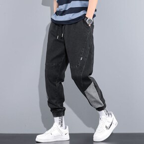 哈伦裤男潮牌直筒宽松束脚裤秋冬款牛仔裤男学生韩版潮...