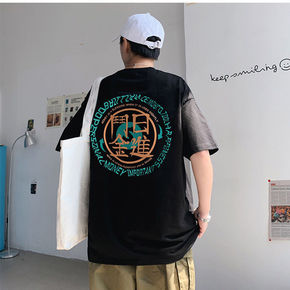 100%纯棉夏季新款短袖T恤男港风国潮印花男学生宽...
