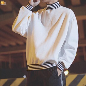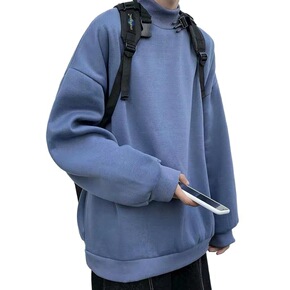 秋季半高领卫衣男学生宽松韩版港风长袖恤男纯色保暖打...