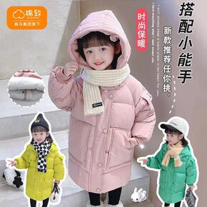 女童冬装2022新款童装洋气棉袄棉服中大童儿童中长...