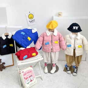 童装跨境中小男女童棉外套INS爆款外贸毛领棉衣厂家...