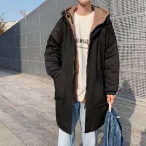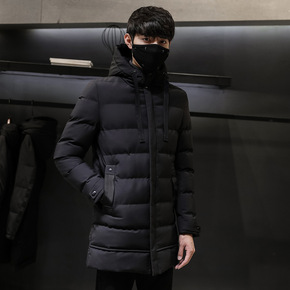 一件代发冬季新款男士中长款棉服韩版连帽加厚防风保暖...