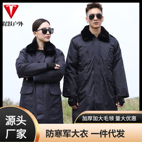 军大衣男冬季防寒加厚保暖棉大衣户外黑色反光条保安大...
