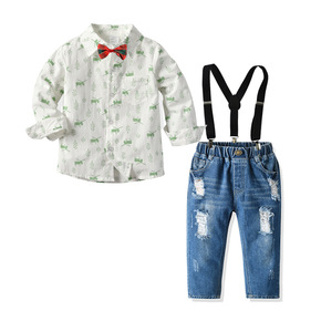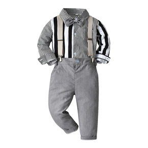 2021秋冬新款男童长袖衬衫套装欧美潮范拼色条纹衬...