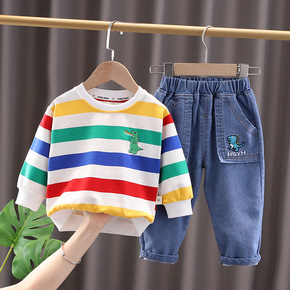 1-5岁秋装中小童男童条纹彩虹长袖上衣童装儿童休闲...