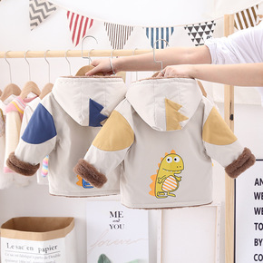 冬季男童可爱恐龙 珊瑚绒拉链外套 冬季厚款...