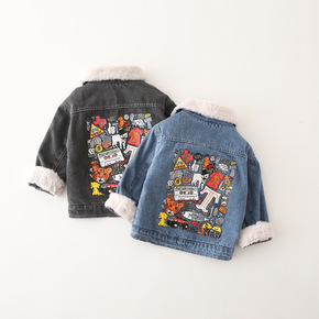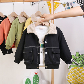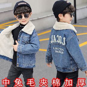 男童外套春秋款加绒上衣宝宝儿童牛仔冬天加厚短款兔毛...