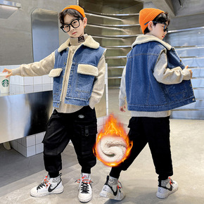 男童牛仔马甲秋冬装2021新款中大童坎肩背心儿童马...