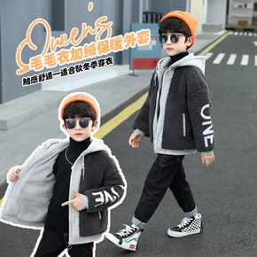 男童加绒春秋冬外套2021新款儿童装男孩3洋气4毛...
