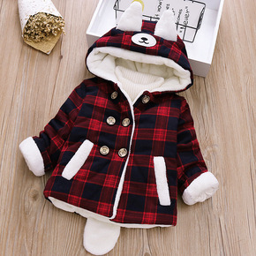 2021冬季新款韩版婴幼童棉衣 男女童格子加绒加厚...