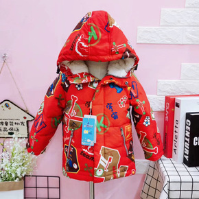 现货童装秋冬儿童长袖蓝色格子印花宝宝棉服卡通中小童...