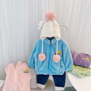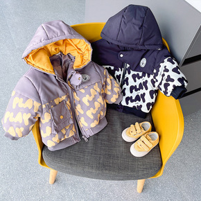 2022新款儿童保暖棉衣男童秋冬连帽开衫外套女童轻...