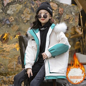 韩国女童加绒派克服外套2021新款儿童中大童冬装童...