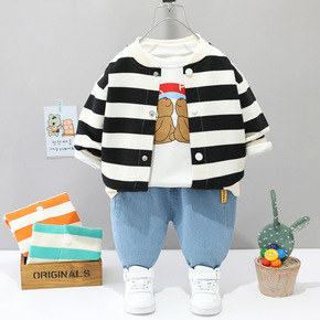 童装2022新款儿童韩版男童条纹开衫套装 婴幼儿宝...