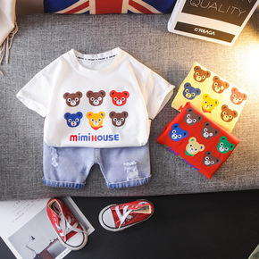 2022夏季新款男童女童圆领短袖套装宝宝休闲牛仔短...
