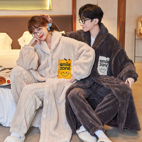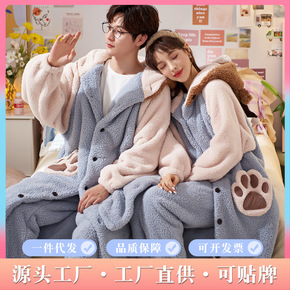 情侣睡衣女冬加厚珊瑚绒开衫休闲可外穿长袖男士法兰绒...