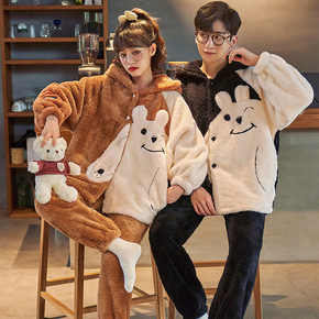 情侣睡衣女秋冬季冬天款男士家居服加绒加厚珊瑚绒可爱...