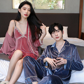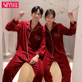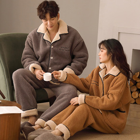 情侣睡衣女秋冬季加厚保暖简约长毛绒男士家居服套装可...