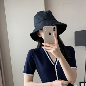 网红黑色渔夫帽女夏天小清新韩版百搭日系防晒遮阳太阳...