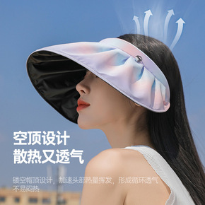 帽子女UV防紫外线空顶防晒遮阳帽 夏季户外骑行大檐...