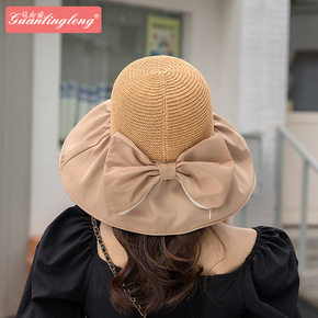 黑胶防晒帽2022新款大檐蝴蝶结夏季遮阳渔夫帽子户...