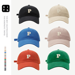 高品质P字母刺绣软顶棒球帽男弯檐韩版ins显脸小百...