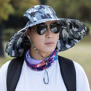 钓鱼防晒帽子男士夏季防晒面罩遮脸渔夫帽太阳帽户外草...