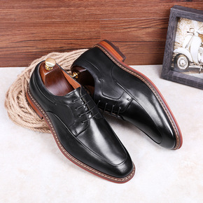 新款环保无味组合底系带三接头男鞋真皮皮鞋尖头车缝线...