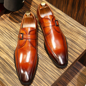 新款尖头商务皮鞋男搭扣鞋欧版金属扣男鞋shoes ...