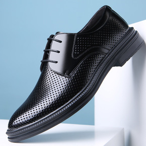 夏季皮鞋男士商务正装皮鞋牛皮镂空皮鞋男系带透气男鞋...