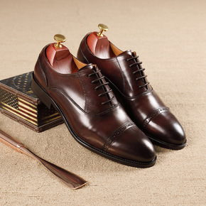 秋季新款男士皮鞋手工商务正装牛津鞋夏季头层牛皮英伦...