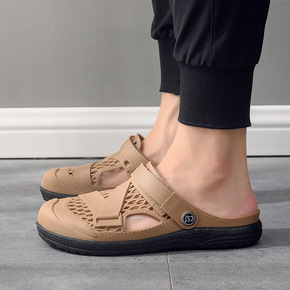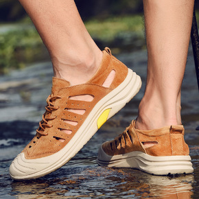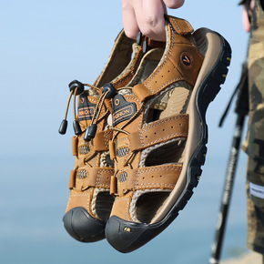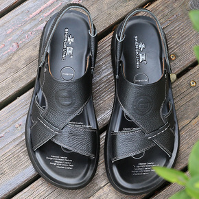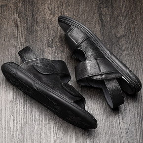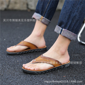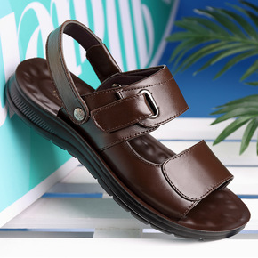 2019新款两用牛皮沙滩鞋 男士休闲防滑凉拖鞋 跨...
