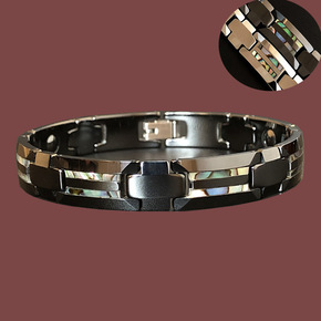 现货海底彩色贝壳手链 钨钢黑陶瓷鲍鱼贝男士磁石多功...